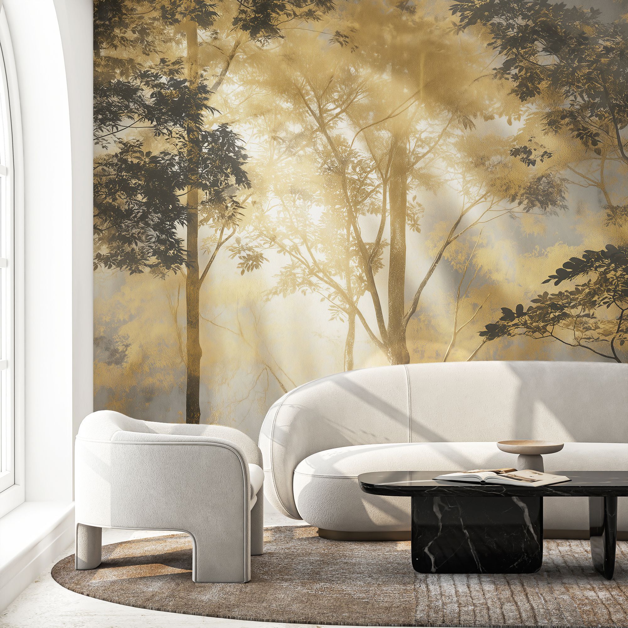 Эти фотообои передают атмосферу утреннего тумана в лесу, погружая пространство в лёгкую, мистическую и умиротворённую гамму. Оттенки серого создают эффект глубины и воздушности, словно деревья постепенно растворяются в дымке, что добавляет интерьеру ощущение пространства и спокойствия. Лёгкая монохромная палитра подчёркивает природную красоту и структуру деревьев, делая композицию одновременно сдержанной и выразительной. Обилие листвы и разнообразие форм создают живую текстуру, которая не перегружает, а органично дополняет пространство. Подходит для гостиных, кабинетов и спален, где необходима атмосфера умиротворённости и лёгкого уединения. Такие обои станут прекрасным фоном для современных интерьеров, которые стремятся к естественной гармонии и спокойно-природной эстетике.