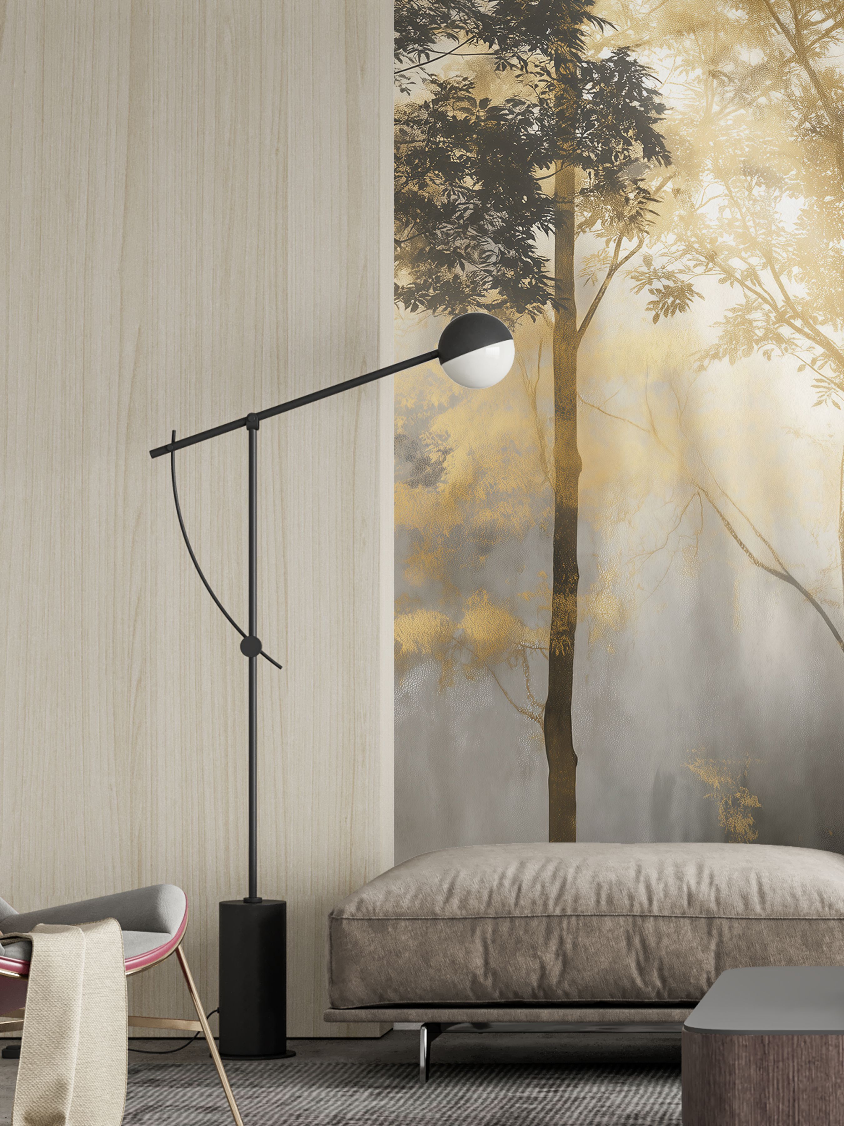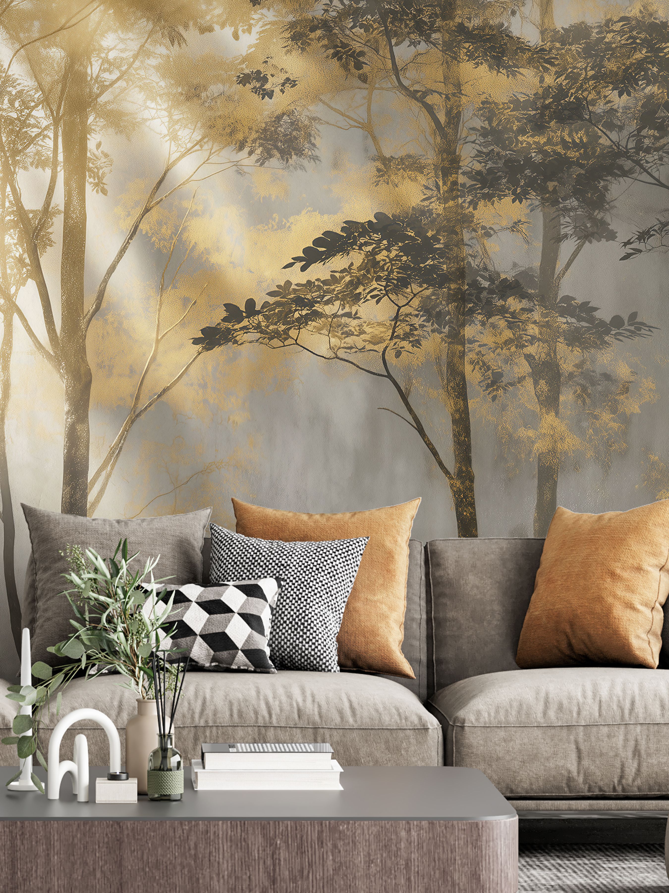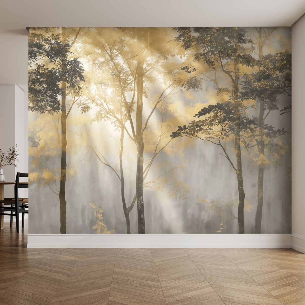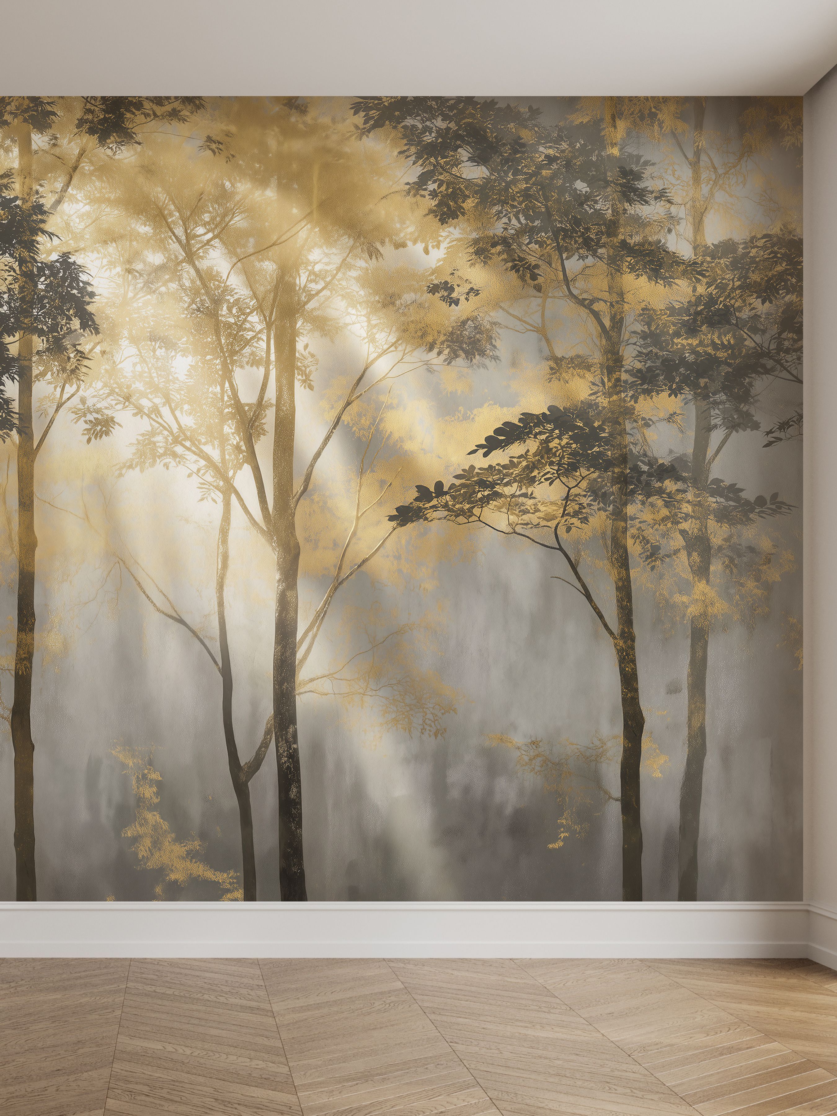 Эти фотообои передают атмосферу утреннего тумана в лесу, погружая пространство в лёгкую, мистическую и умиротворённую гамму. Оттенки серого создают эффект глубины и воздушности, словно деревья постепенно растворяются в дымке, что добавляет интерьеру ощущение пространства и спокойствия. Лёгкая монохромная палитра подчёркивает природную красоту и структуру деревьев, делая композицию одновременно сдержанной и выразительной. Обилие листвы и разнообразие форм создают живую текстуру, которая не перегружает, а органично дополняет пространство. Подходит для гостиных, кабинетов и спален, где необходима атмосфера умиротворённости и лёгкого уединения. Такие обои станут прекрасным фоном для современных интерьеров, которые стремятся к естественной гармонии и спокойно-природной эстетике.