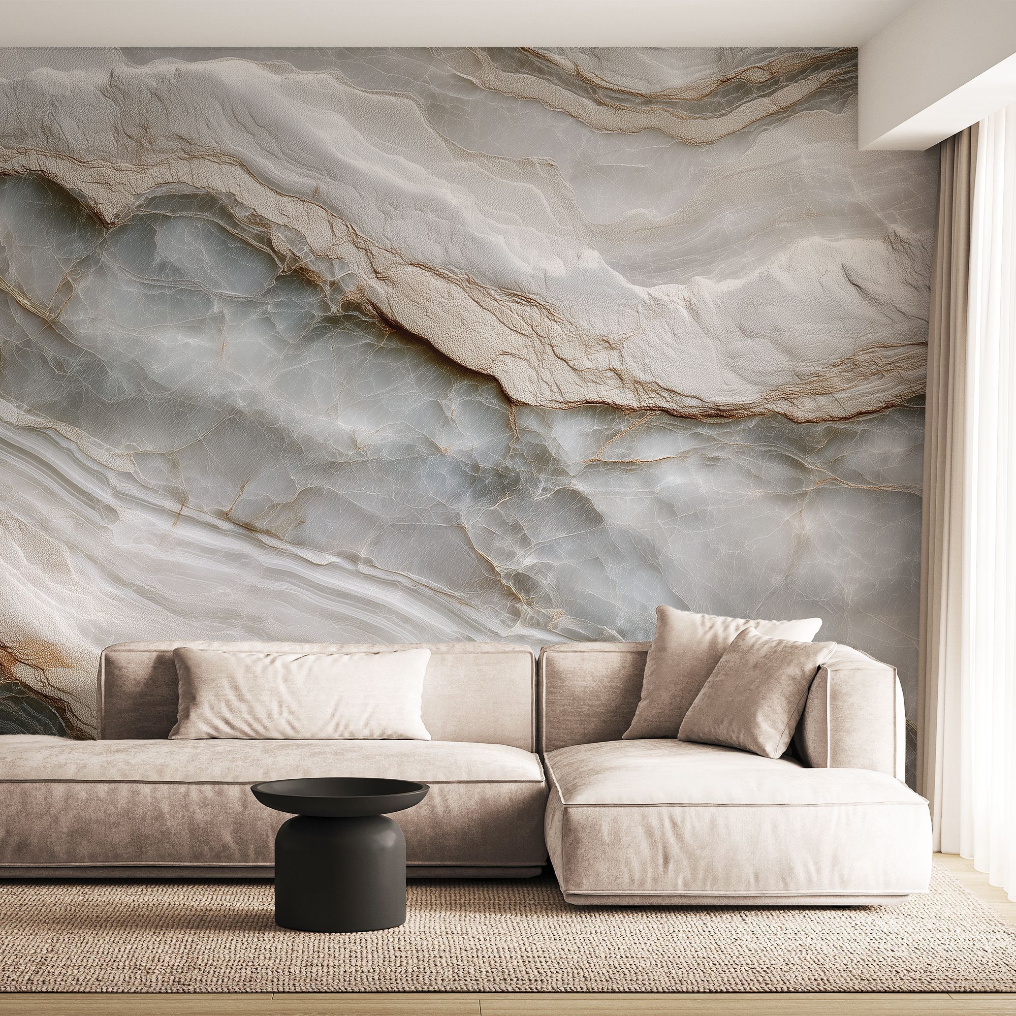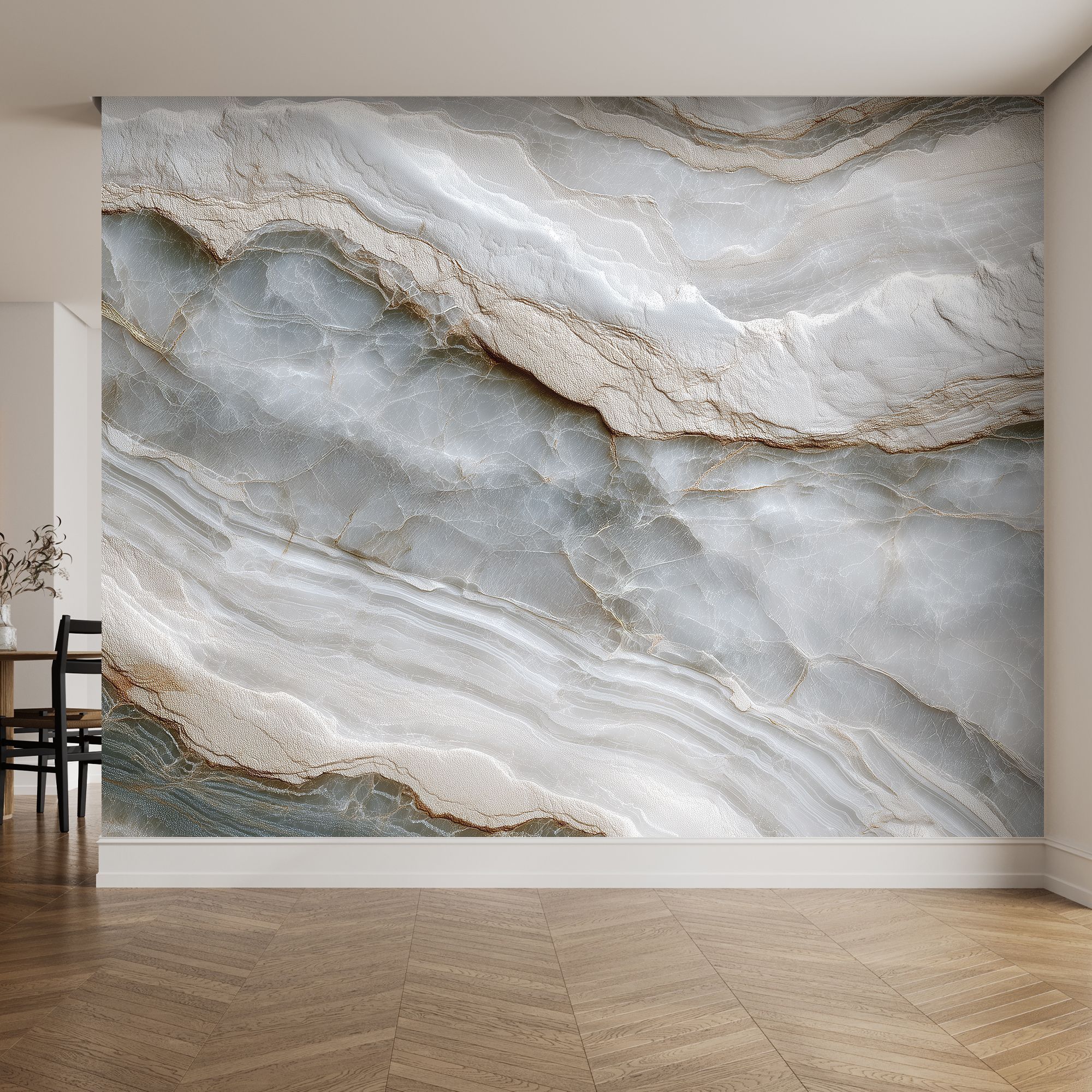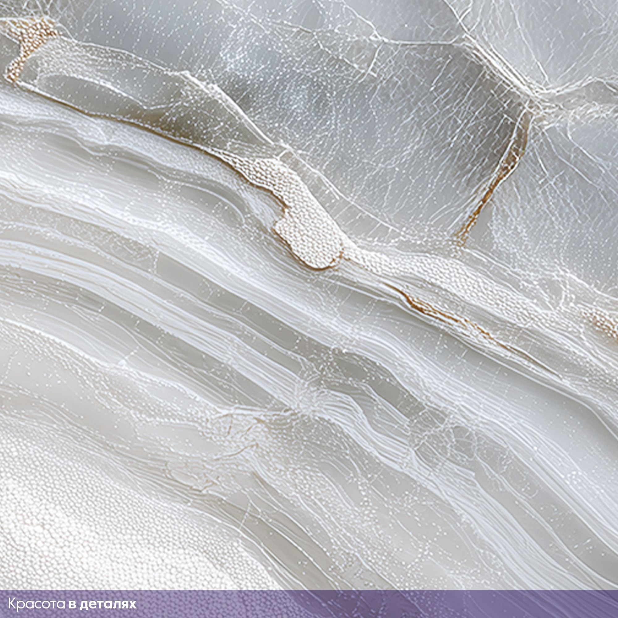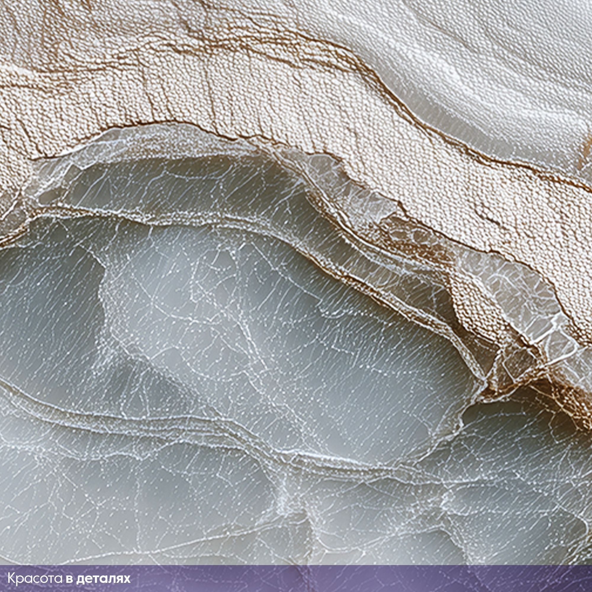 Эти фотообои представляют собой изысканное изображение поверхности мраморного оникса с его характерными прозрачными и полупрозрачными слоями. На фоне нежных оттенков белого, серо-голубого и бежевого простираются тончайшие прожилки и волны, создавая эффект текучести и глубины. Световые блики и мягкий переход оттенков подчёркивают натуральную красоту камня, наполняя пространство элегантностью и утончённостью. Идеальный выбор для создания спокойной и роскошной атмосферы в гостиной, спальне или кабинете. Такие обои прекрасно сочетаются с современным минимализмом, классическим интерьером и стилем шикарного ар-деко, визуально расширяют пространство и привносят природную гармонию. Эти фотообои подойдут тем, кто ценит натуральную эстетику и стремится к созданию стильного и воздушного пространства.
