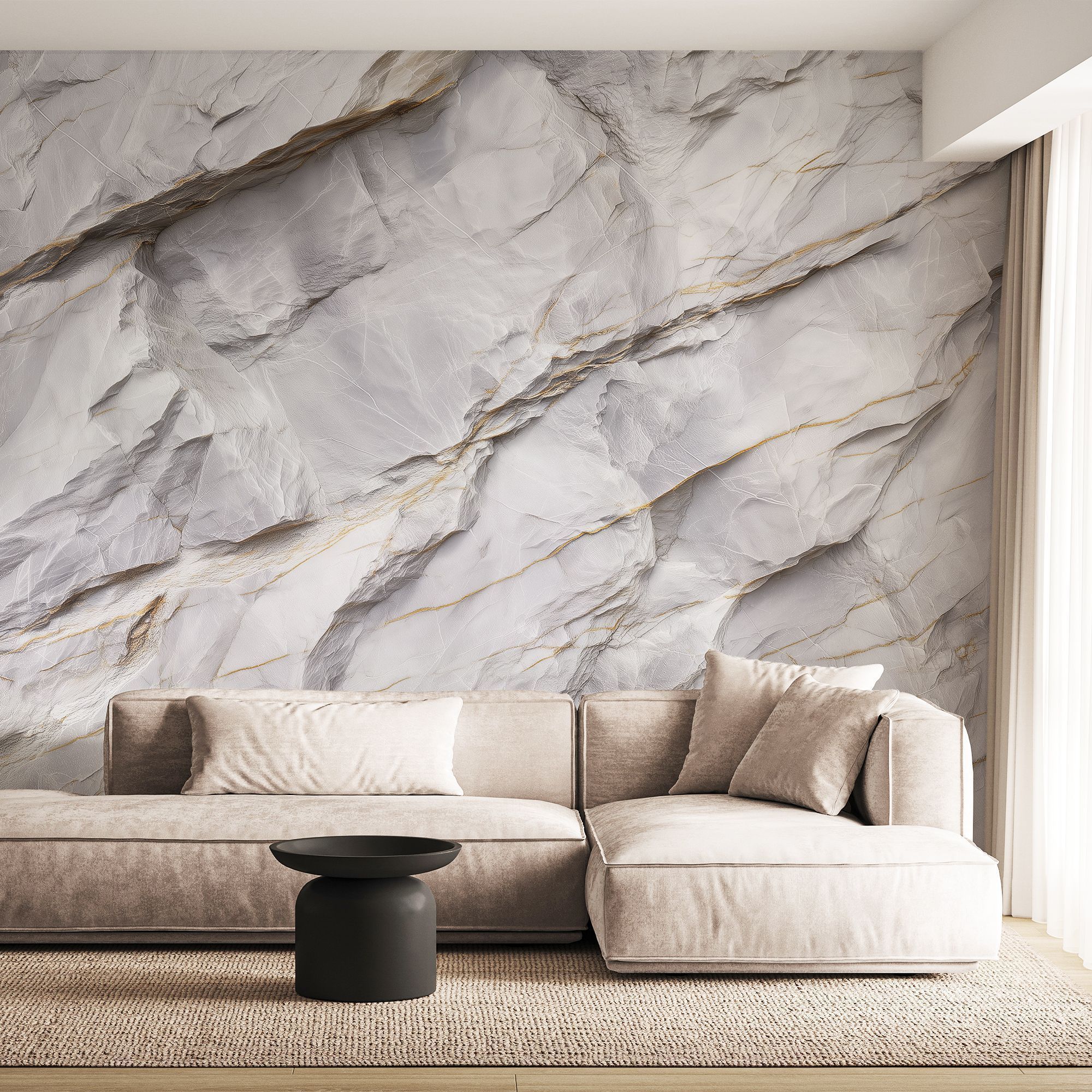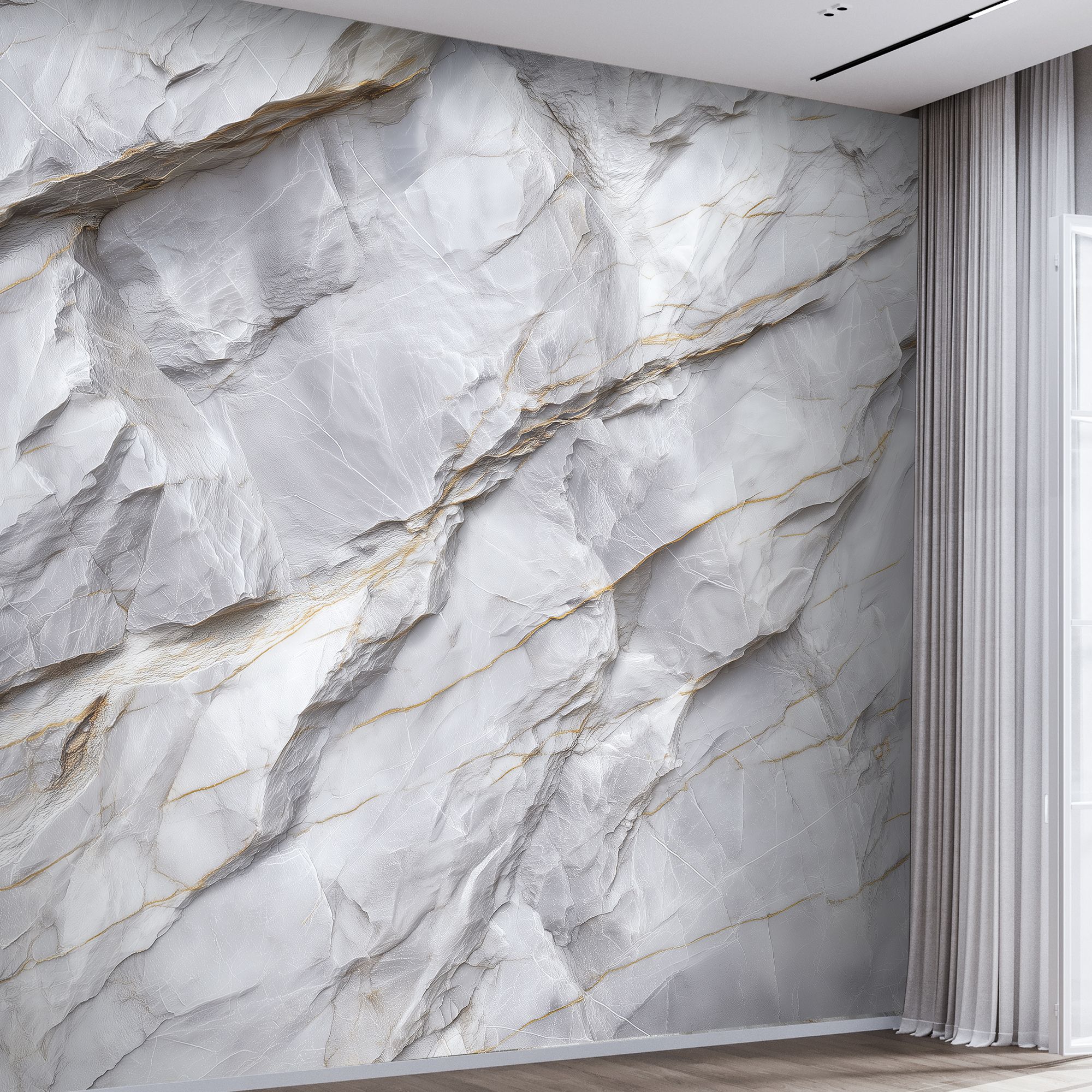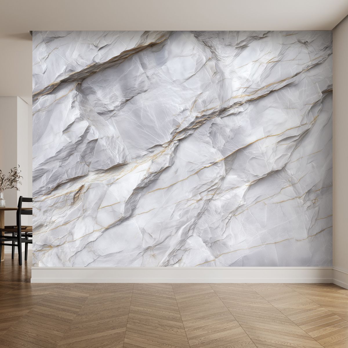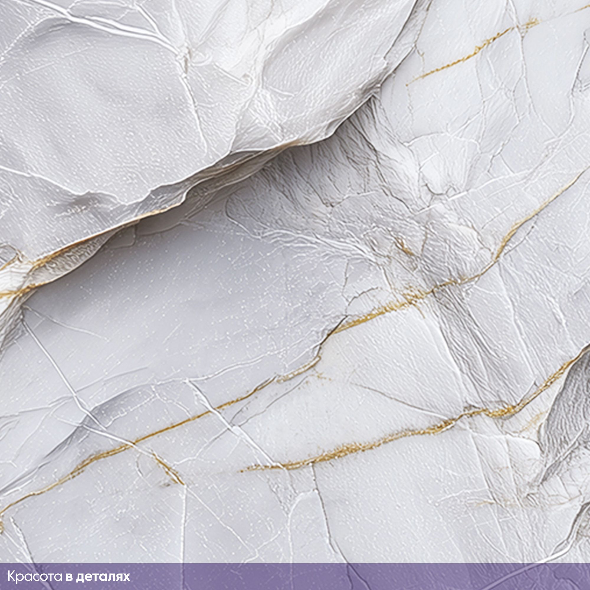 Эти фотообои — воплощение изысканной природной красоты, словно фрагмент благородного белого мрамора с утончёнными золотыми прожилками, перенесённый прямо на стену вашего дома. Нежная игра света и тени на текстурированной поверхности создаёт ощущение глубины и объёма, а изящные линии прожилок напоминают о неповторимости природных узоров. Чистые оттенки белого и серебристого гармонично сочетаются с тёплыми золотистыми акцентами, придавая интерьеру одновременно свежесть и роскошь. Такая отделка стен мгновенно превращает обычное помещение в пространство премиум-класса, наполненное ощущением лёгкости и элегантности. Фотообои с мраморным рисунком не просто украшают интерьер — они задают тон всему пространству, подчёркивают его статусность и безупречный вкус хозяев. Привнесут в атмосферу спокойствие и благородство, визуально расширят пространство. Эти фотообои универсальны и легко впишутся как в современные, так и в классические интерьеры, добавив им нотку роскоши и природной гармонии.