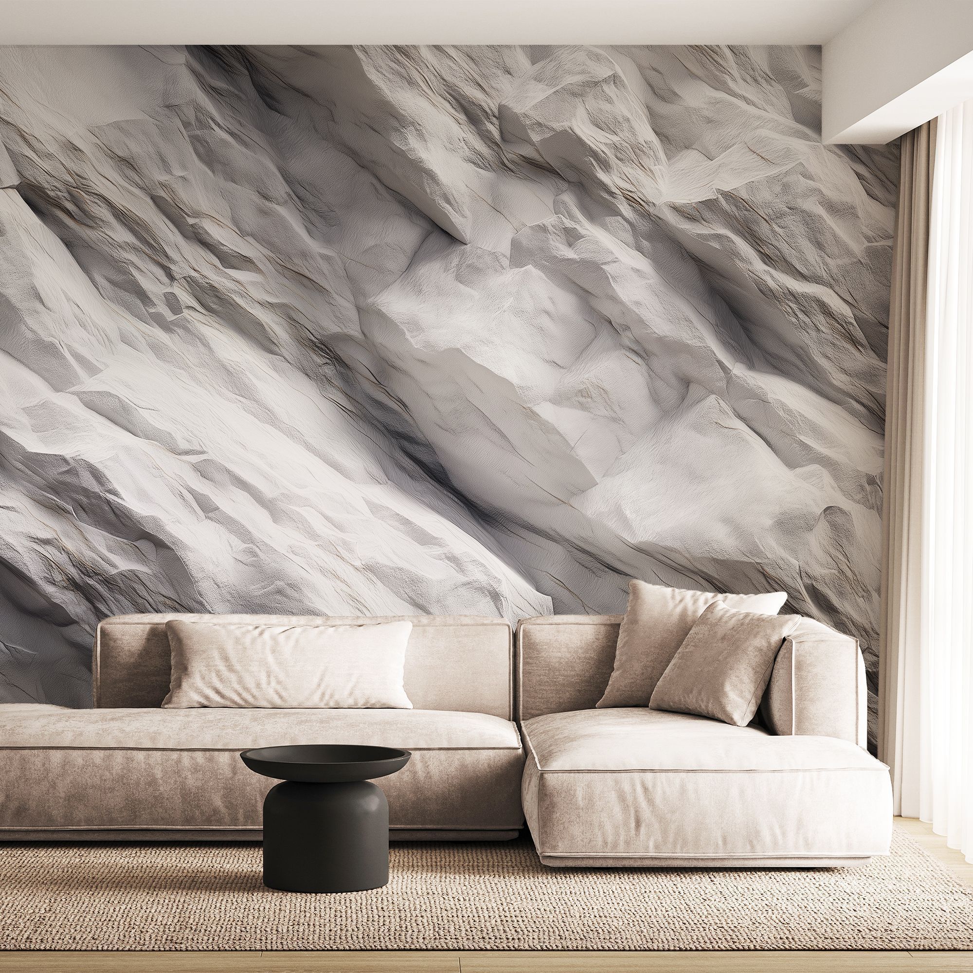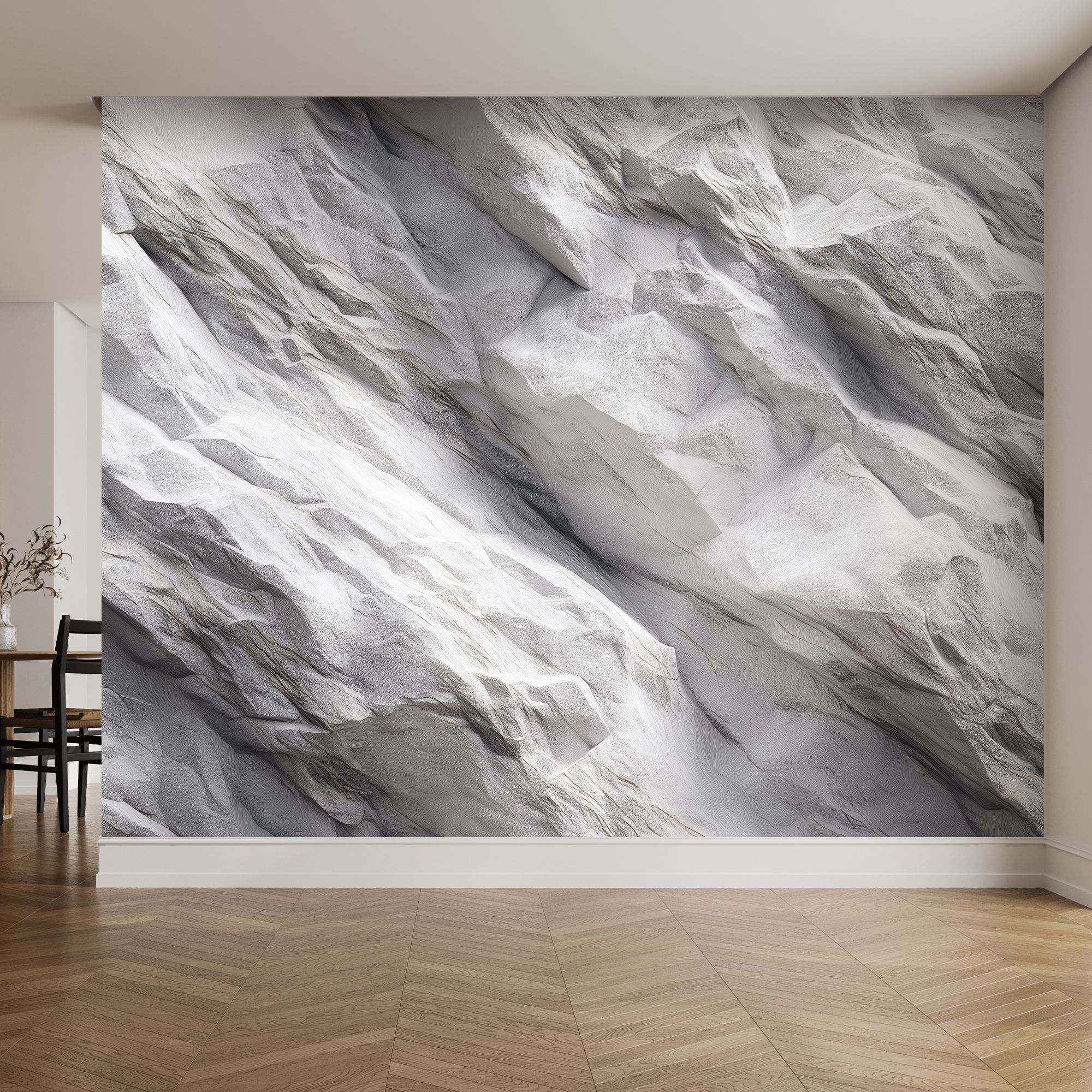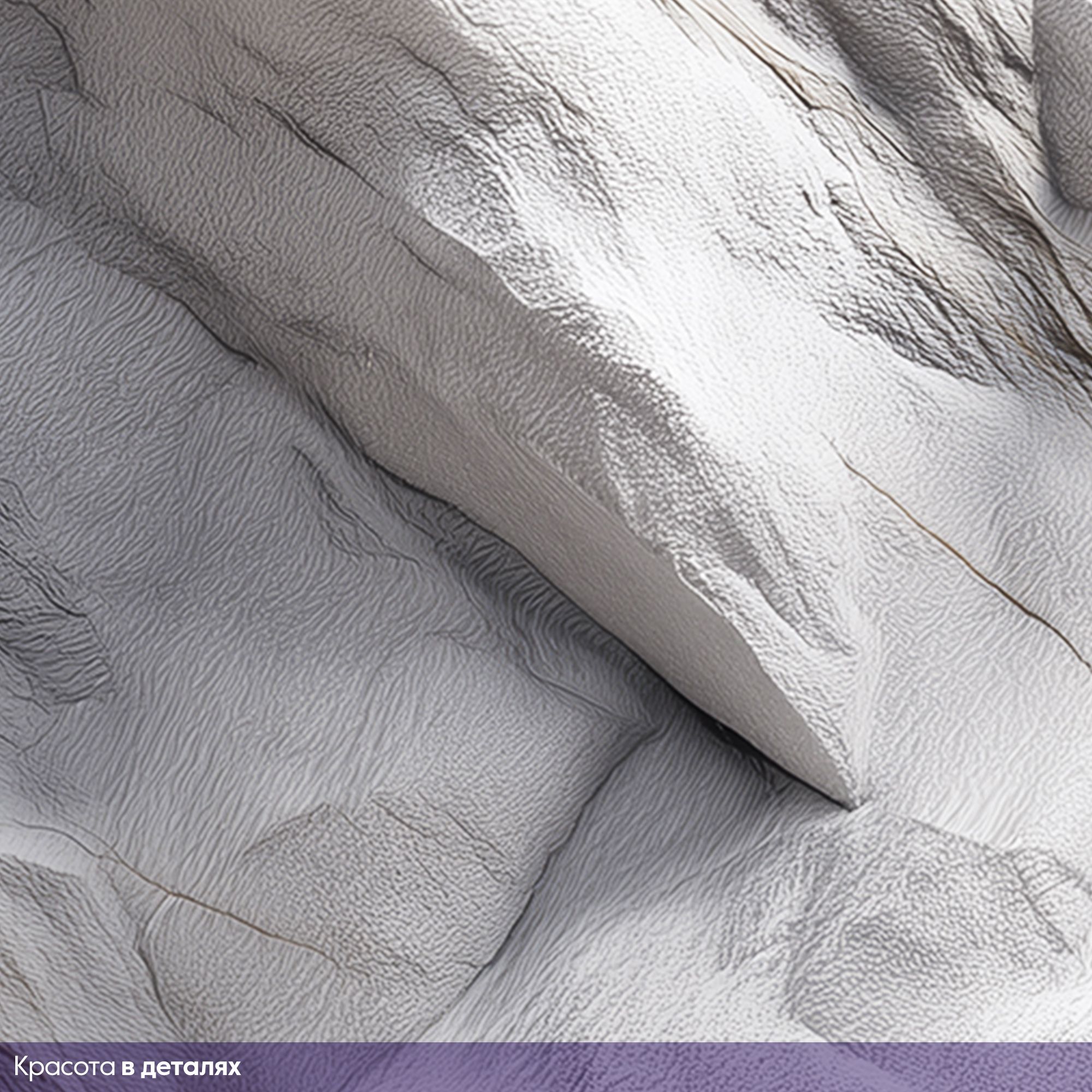 Эти фотообои — воплощение изысканной природной эстетики, словно фрагмент белоснежного мраморного утёса, перенесённый прямо на стену вашего дома. Текстура поражает своей глубиной и реалистичностью: плавные изгибы, едва заметные прожилки и игра света на «поверхности камня» создают иллюзию трёхмерности. Оттенки белого и светло-серого гармонично перетекают друг в друга, придавая изображению благородную сдержанность и чистоту. Особенность этих обоев — в их универсальности и способности преобразить любое пространство, добавив ему: элегантности за счёт благородной мраморной текстуры; визуальной глубины благодаря объёмному эффекту; спокойствия благодаря нейтральной цветовой гамме; современного шика — такой фон выглядит стильно и актуально. Фотообои органично впишутся в интерьеры в стилях минимализм, лофт, скандинавский, неоклассика, арт-деко. Они прекрасно сочетаются с: монохромной цветовой гаммой; стеклянными и металлическими элементами; лаконичной мебелью; натуральными материалами (дерево, камень, текстиль). Такой декор не просто украсит стену, а станет центральным элементом интерьера, задающим тон всему пространству.
