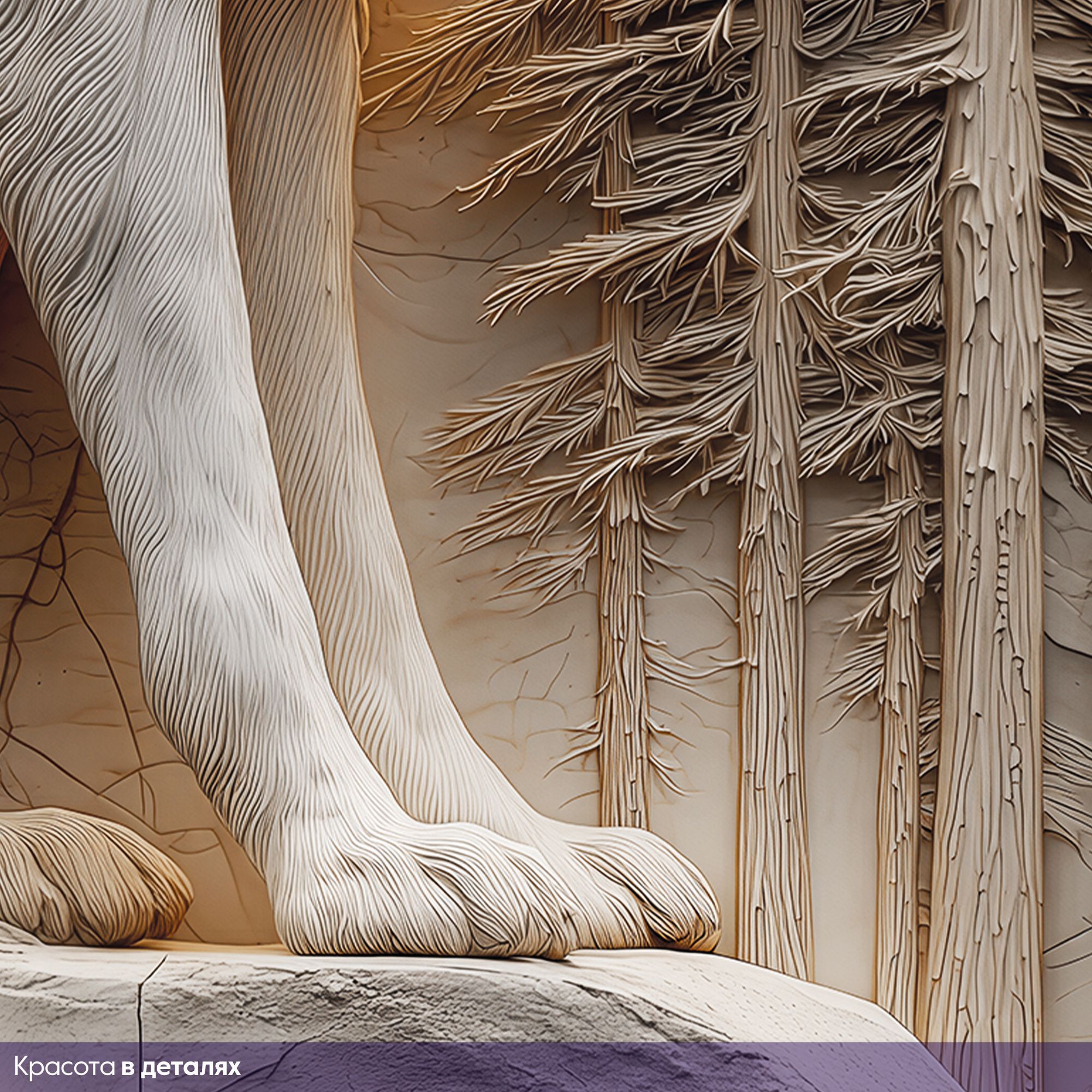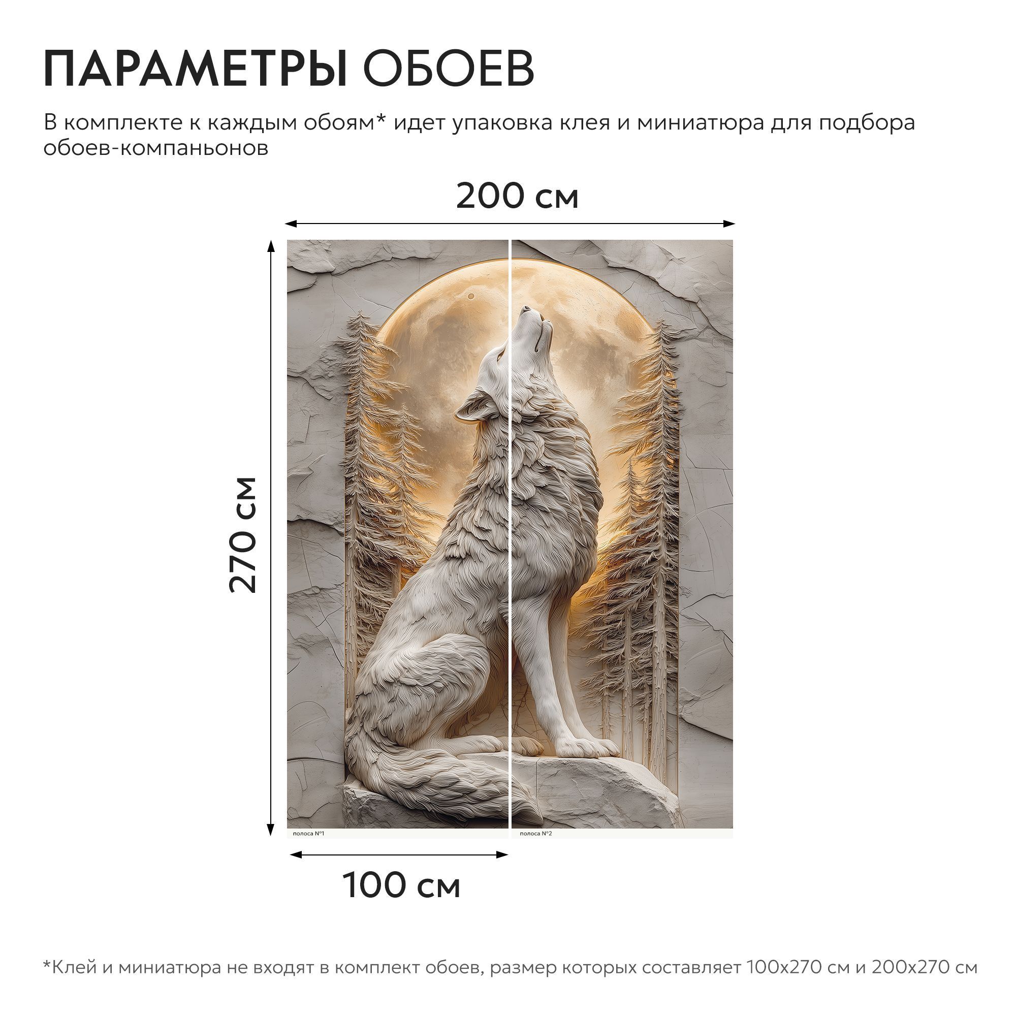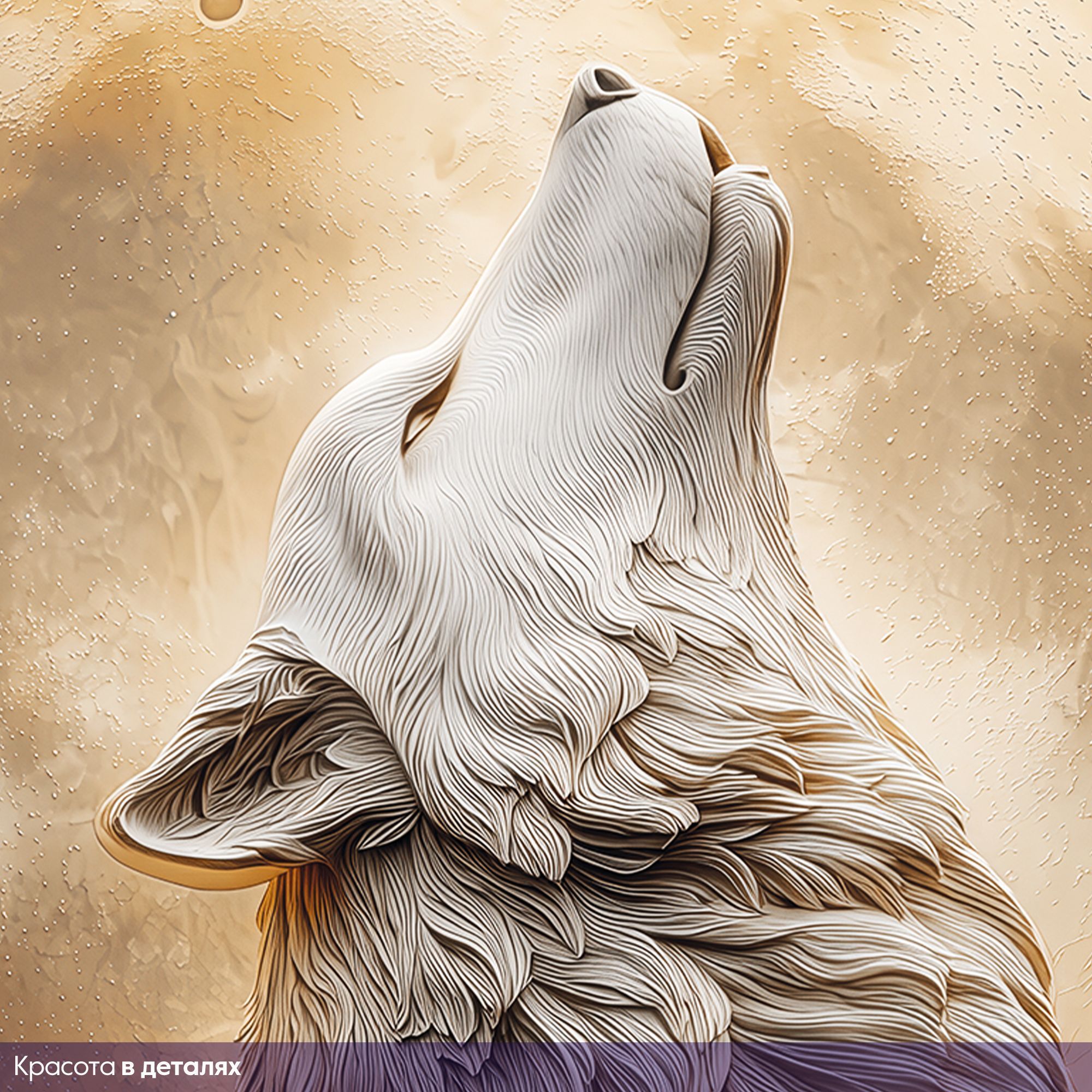 Эти фотообои представляют собой удивительное сочетание силы и таинственности, воплощённое в образе величественного волка, задумчиво воющего на фоне полной луны. Выполненное в технике резьбы по камню изображение словно оживает благодаря детальной проработке каждой шерстинки и текстуре скалистой поверхности. За волком возвышаются стройные хвойные деревья, которые придают композиции глубину и атмосферу уединённого леса. Тёплое золотистое свечение луны создаёт эффект загадочного ночного света, наполняя пространство теплом и мистикой. Этот художественный декор идеально подойдёт для тех, кто ценит природную энергию и силу духа, желая добавить своему интерьеру изысканную драматичность и символизм. Фотообои гармонично впишутся в комнаты с природными или этническими мотивами, став эффектным акцентом любого пространства.