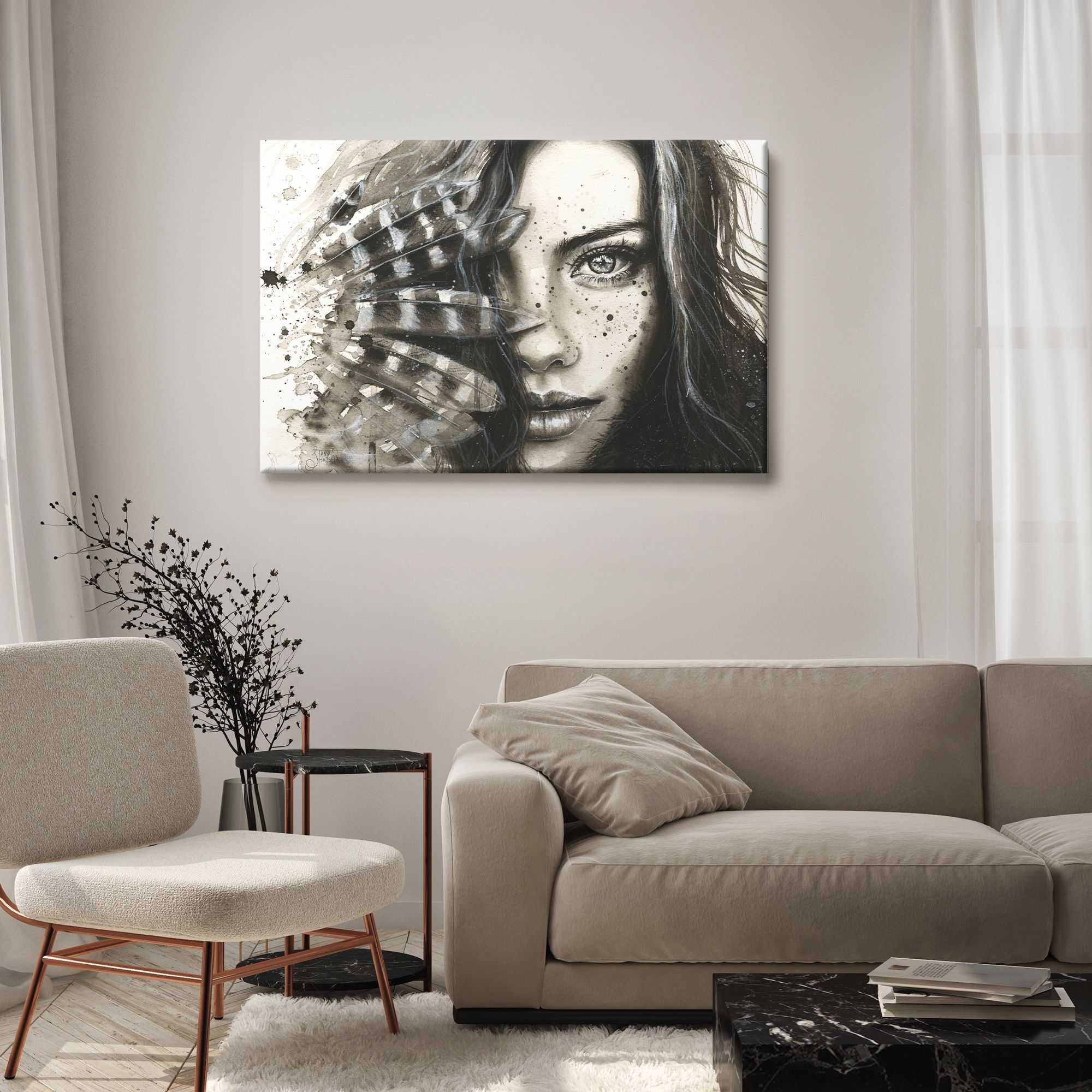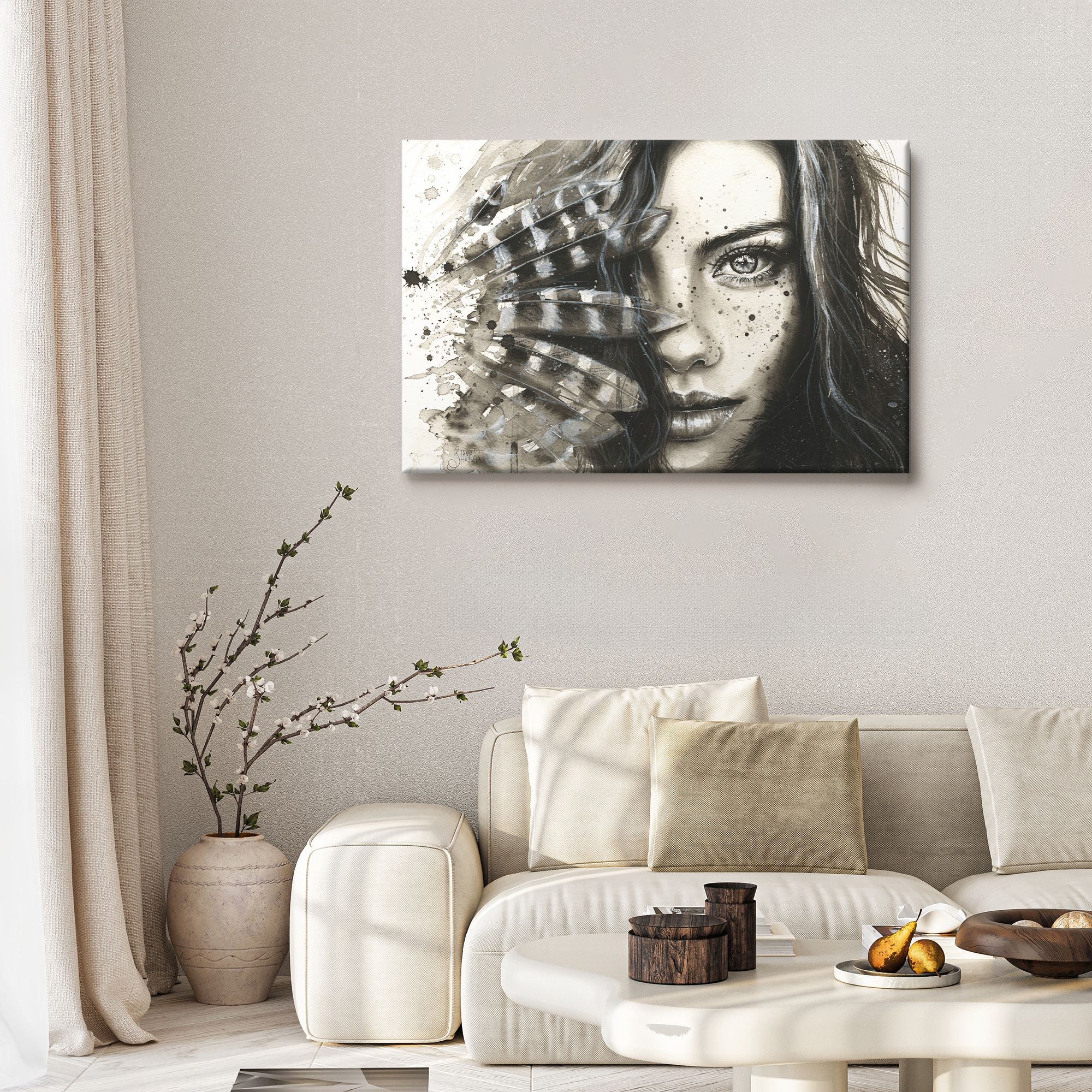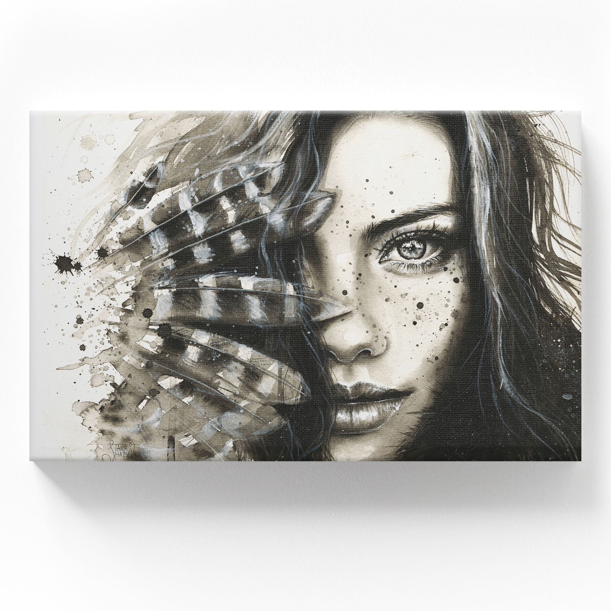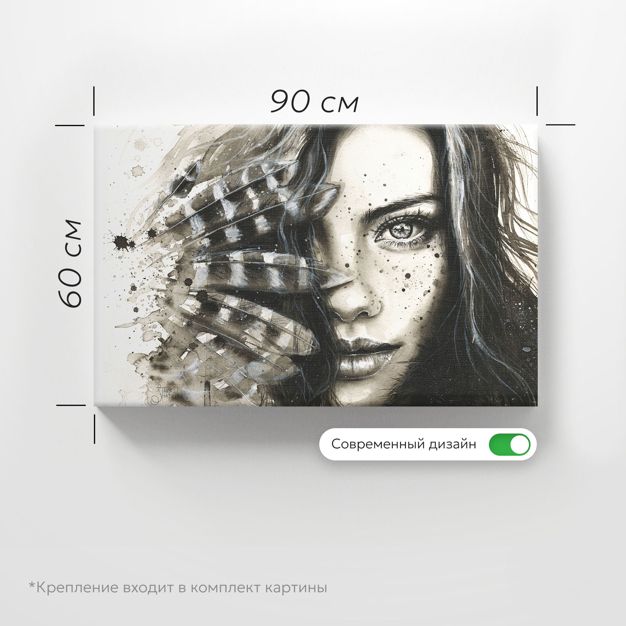 Картина на холсте "Девушка с перьями"
