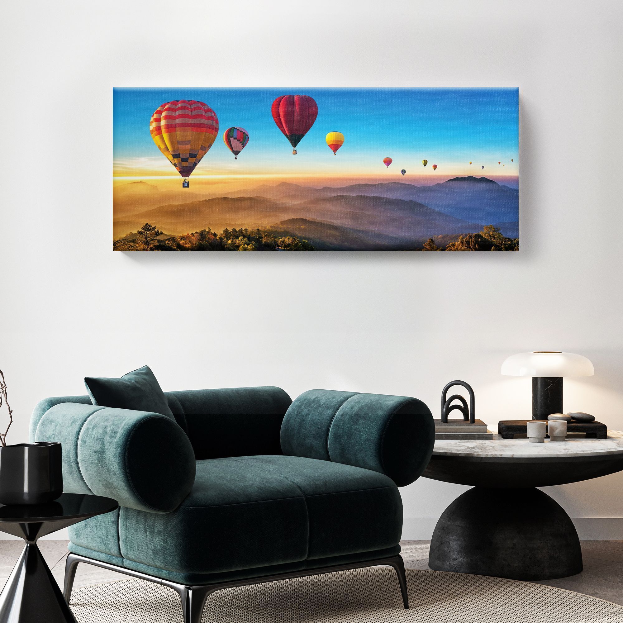 Полет на воздушном шаре - незабываемое адреналиновое приключение. И если Вы еще на него не решились, предлагаем сделать первый шаг к мечте! Приобретая картину на холсте «В небесах» - Вы получаете яркий и красочный элемент для декора собственного жилья или рабочего кабинета, а также визуальное напоминание Вашего желания. Для тех смельчаков, которые взмывали в поднебесную в плетенной корзине, представленная иллюстрация вызовет лишь приятные воспоминания и эмоции. Живописные воздушные шары на холсте выполнены из качественных материалов с помощью технологий цифровой печати высокого уровня. Цвета и оттенки со временем не потускнеют, останутся такими же яркими, как в первый день покупки. Вы можете купить картину на холсте воздушные шары «В небесах» уже сегодня!