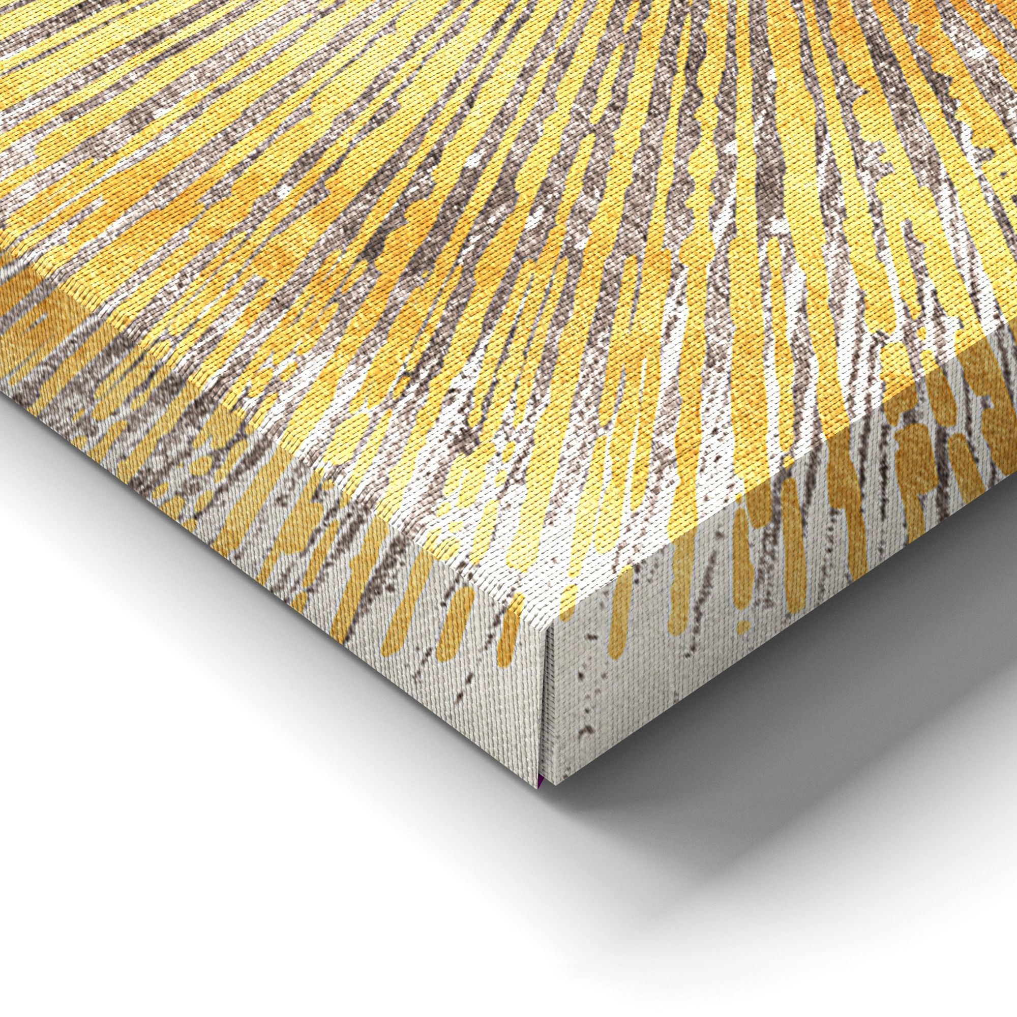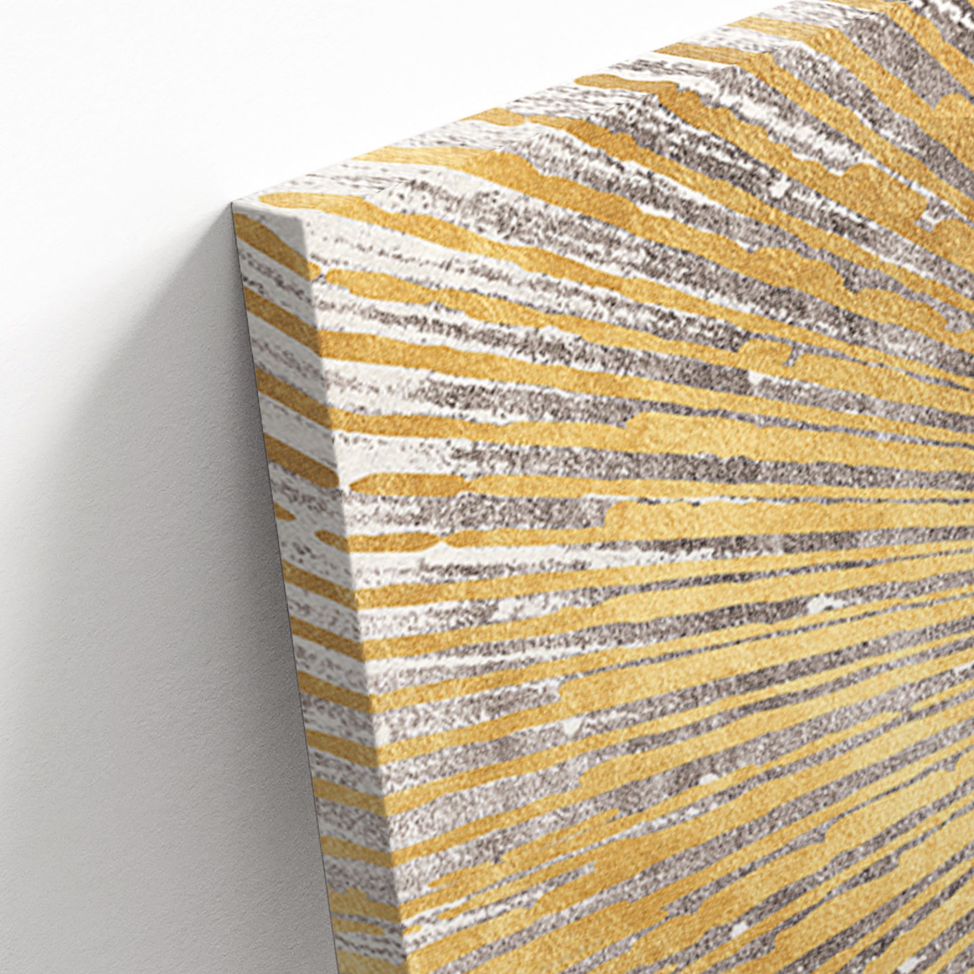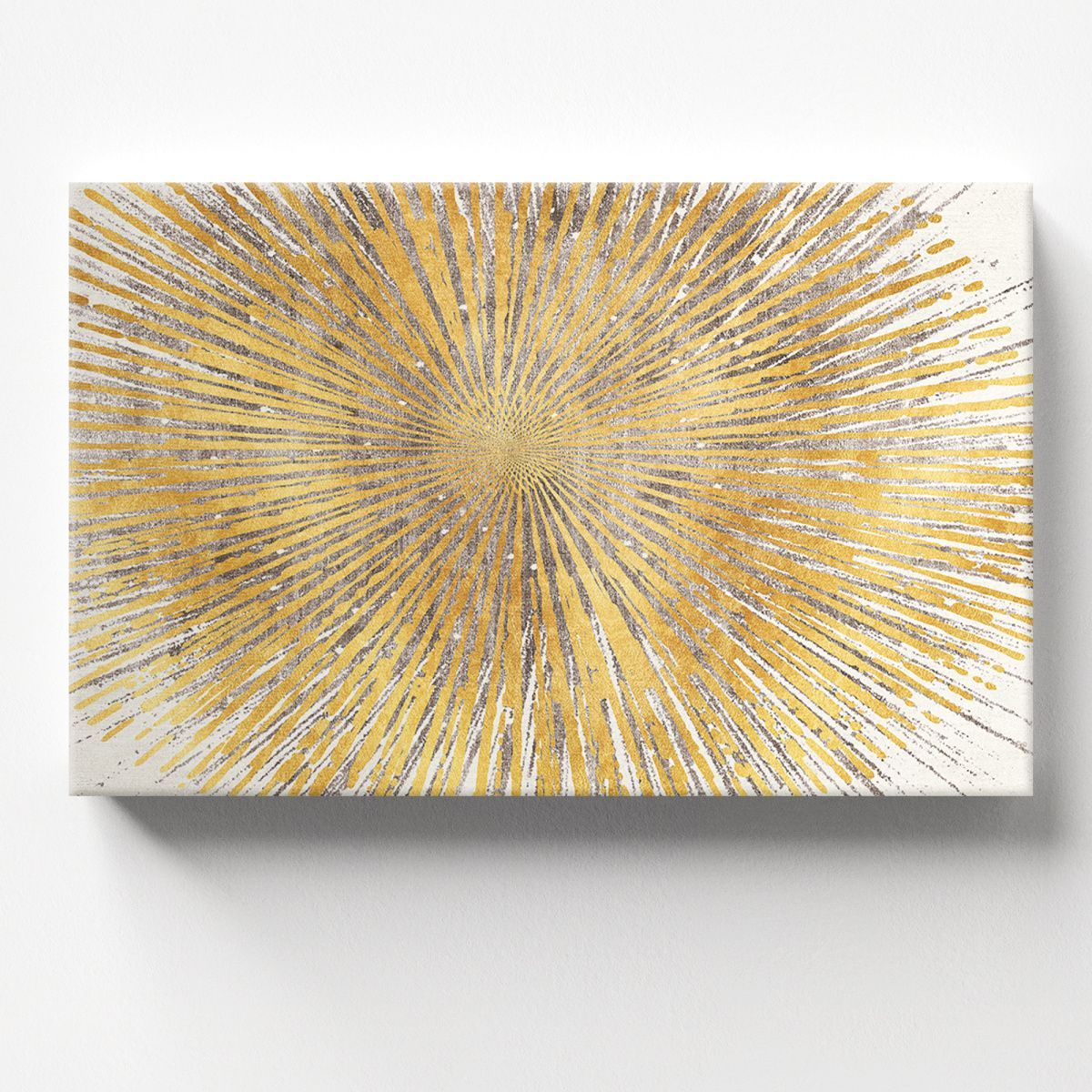 Картина выполнена в абстрактном стиле и изображает эффект сияющего всплеска или солнечных лучей, расходящихся из центра полотна. Основной мотив — динамичные линии, напоминающие золотые и серебристые лучи, которые создают ощущение энергии и движения. Цветовая гамма построена на сочетании тёплых золотистых оттенков с холодными серебристо-серыми, что придаёт работе глубину и контраст. Фон светлый, нейтральный, что позволяет «всплеску» лучей выглядеть особенно выразительно. Текстура мазков неравномерная, с элементами пастозности, что добавляет объём и художественную выразительность. Композиция центростремительная — взгляд зрителя сразу притягивается к «ядру» сияния. Картина на холсте станет выразительным акцентом на однотонной стене, подчеркнёт лаконичность мебели и отделки. Золотые лучи добавят тепла и динамики в сдержанный интерьер.