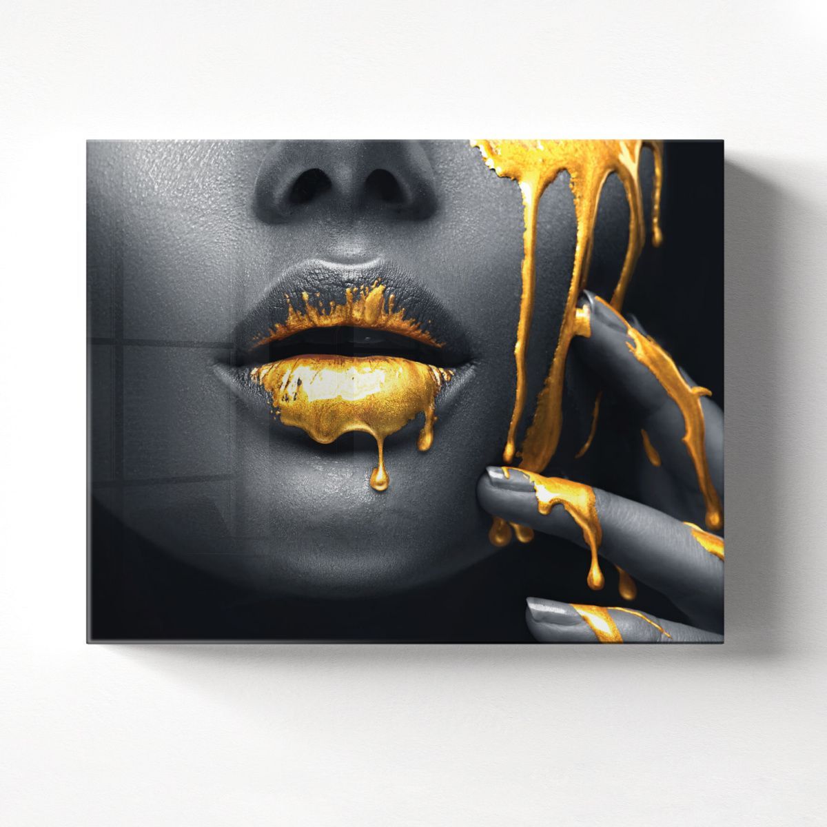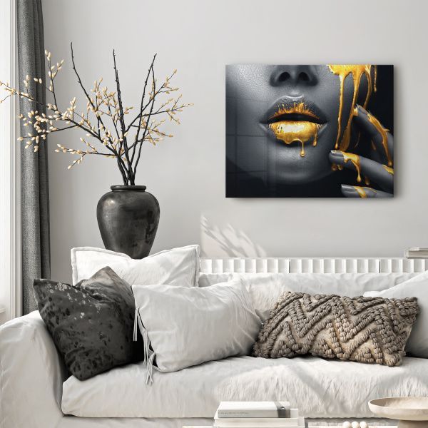 Оригинальность картины на стекле «Модель золото III» идеально вписывается в футуристический дизайн интерьера, стиль конструктивизм и лофт. Минимум лишних деталей, лишь нижняя часть лица в черно-белых тонах и броский акцент в виде жидкого золота. Смелые личности и поклонники креатива украсят представленным элементом декора свою обитель или рабочий кабинет. Основой иллюстрации стало закаленное стекло, которое делает рисунок более объемным и привлекательным. В уходе картина на стекле довольно проста, хоть и нуждается в более аккуратном обращении. Рисунок не склонен к выгоранию и выцветанию. Данный элемент интерьера может стать частью Вашего личного пространства или послужит отличным презентом для любителей необычных иллюстраций.