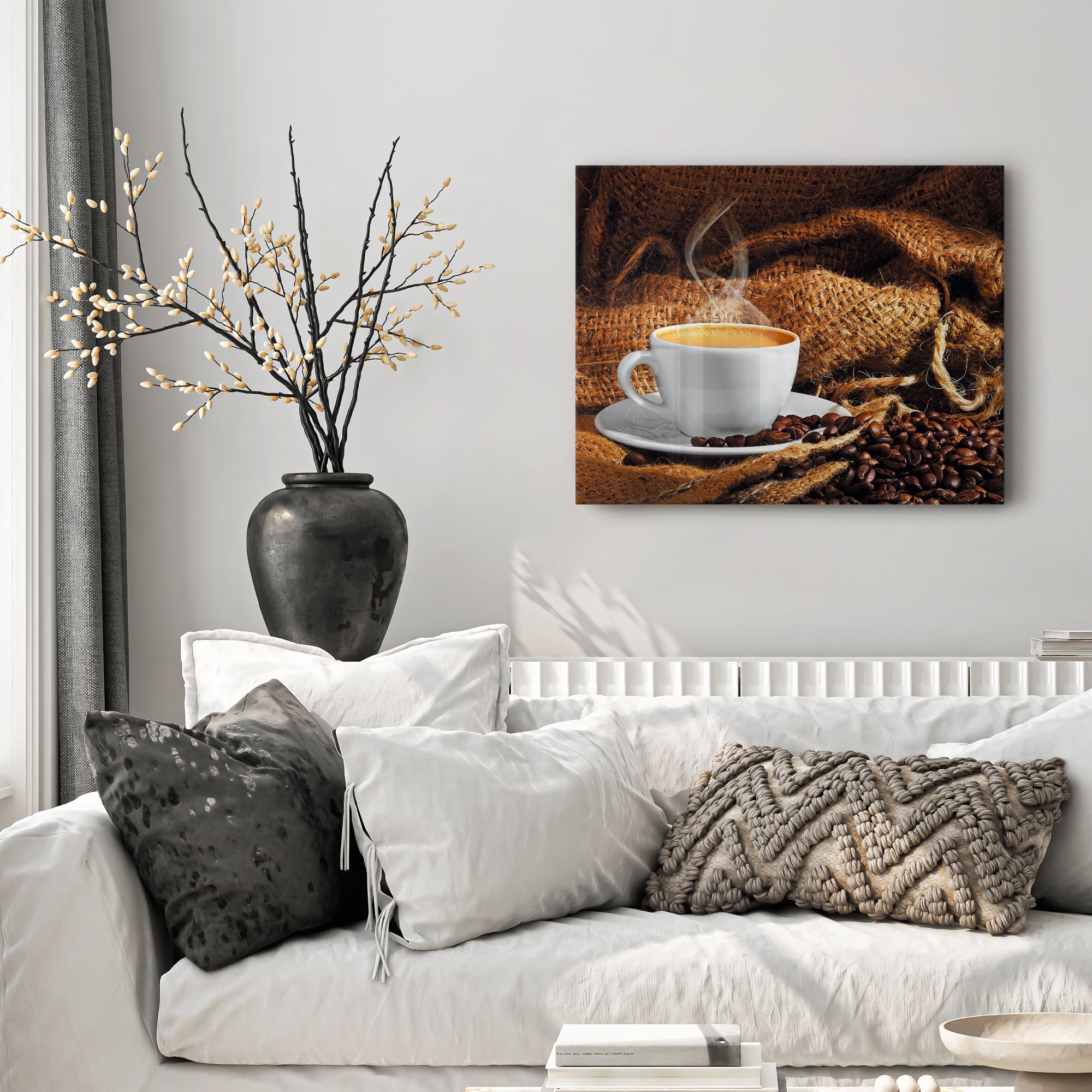 Есть вещи, которые стоят того, чтобы им хранили верность. Например, кофе. ( Джон Голсуорси) Арабика, робусто, либерика – звучат музыкой для истинных ценителей кофе. Это напиток очень индивидуальный. Его нужно научиться понимать, научиться любить. Кофе нужно пить маленькими глотками, вдумываясь в послевкусие. Лучше в уютном кресле, с хорошей книгой. Стильная картина на стекле "Ароматный кофе" - купить недорого стеклянные картины в интернет-магазине Postermarket для кухни, столовой, кафе и ресторана.