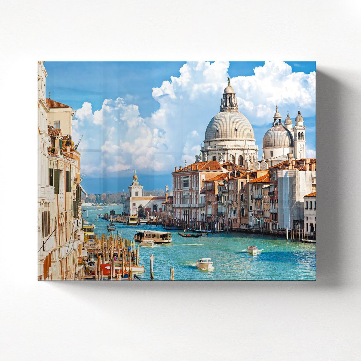 Венеция – город на каналах, подобного которому нет в целом мире. Волны Адриатики облизывают цоколи дворцовых колонн по сторонам Гранд-канала. Гондолы, гондольеры в полосатых рубашках и шляпах-канотье…В морской бриз вплетена струя ароматов пиццы. Лето в Венеции – время выбросить шелуху будней за борт гондолы и начать ЖИТЬ! Модная картина на стекле "Гранд-канал и базилика Санта-Мария-Делла-Салюте, Венеция" - купить репродукцию на заказ в интернет-магазине Postermarket для гостиной, кухни, прихожей.