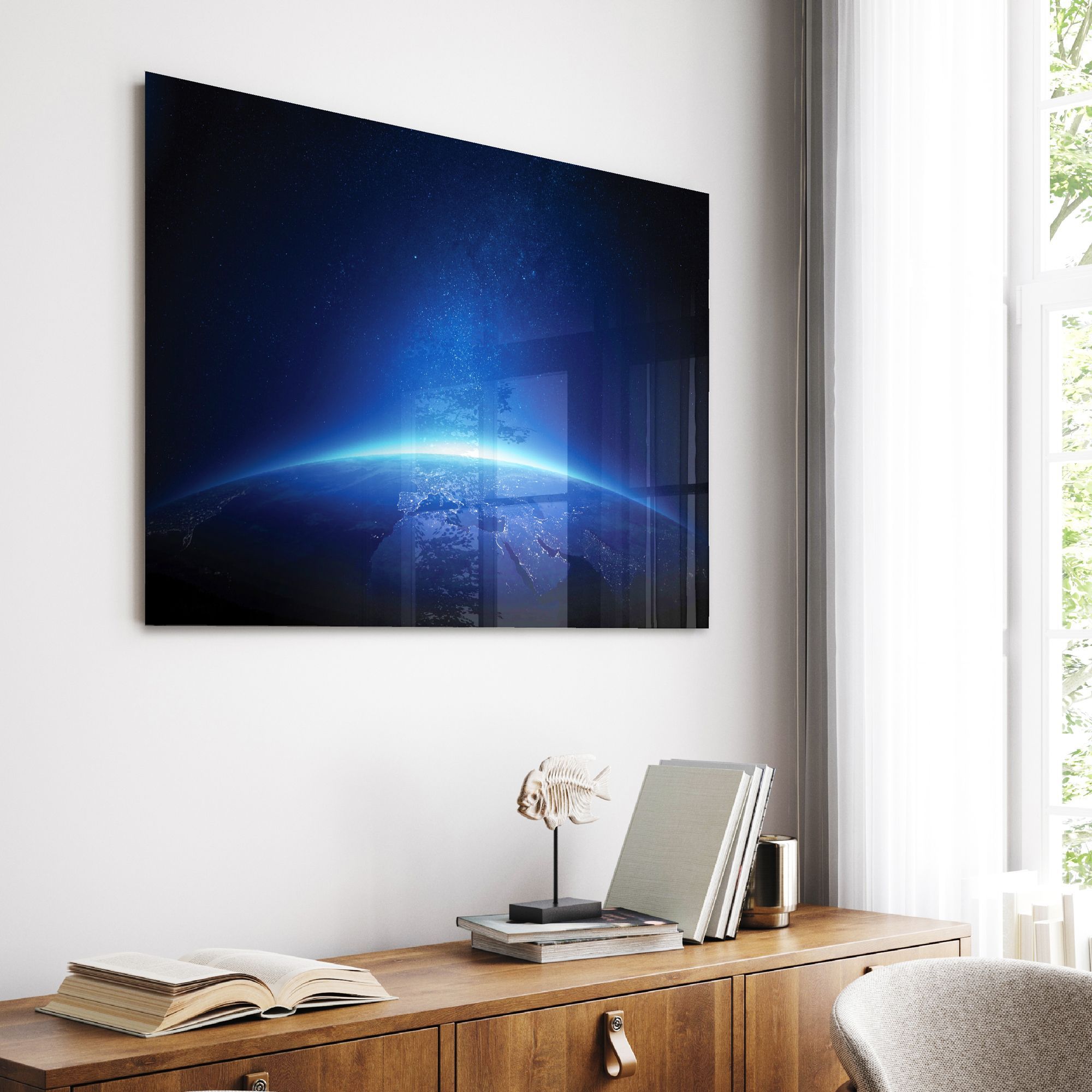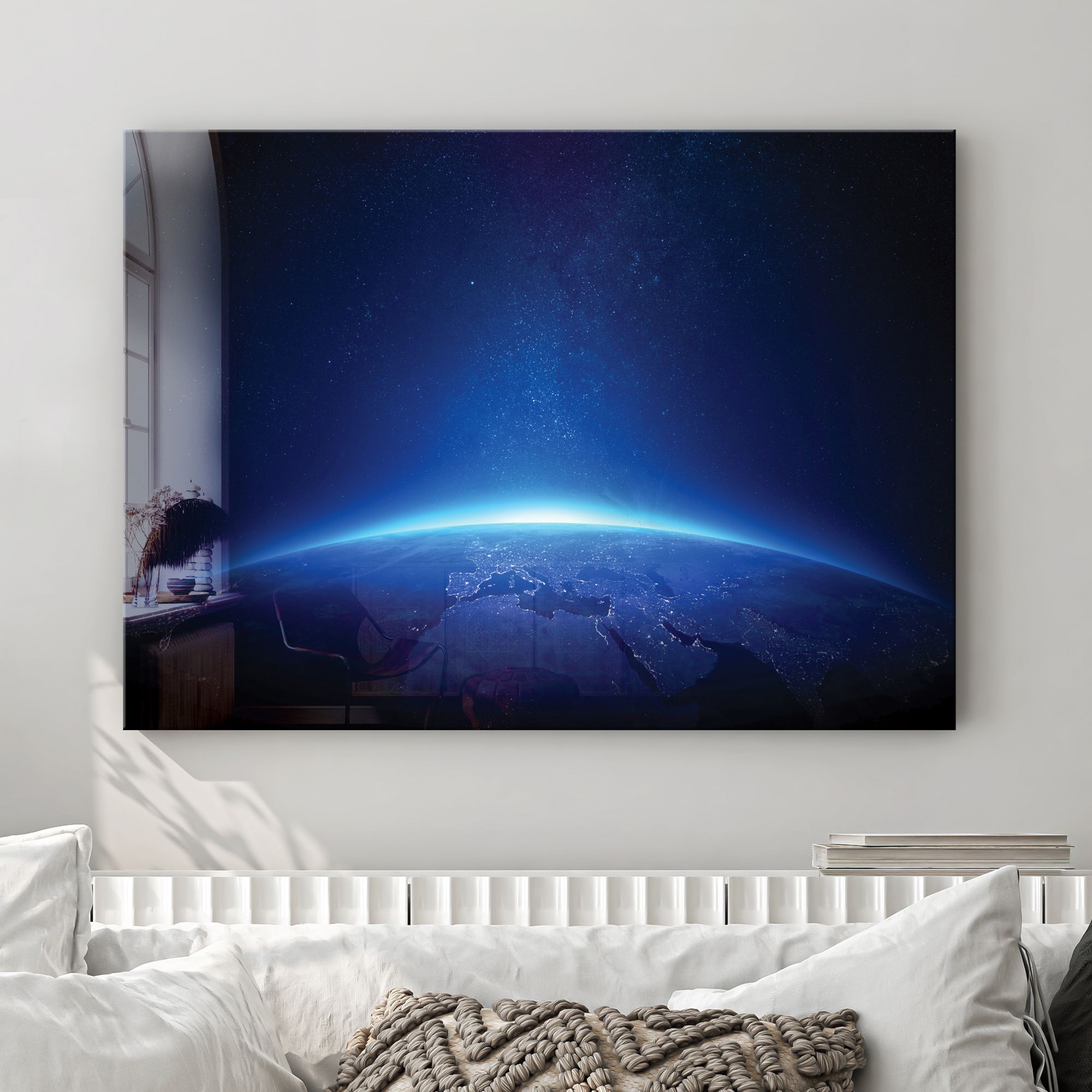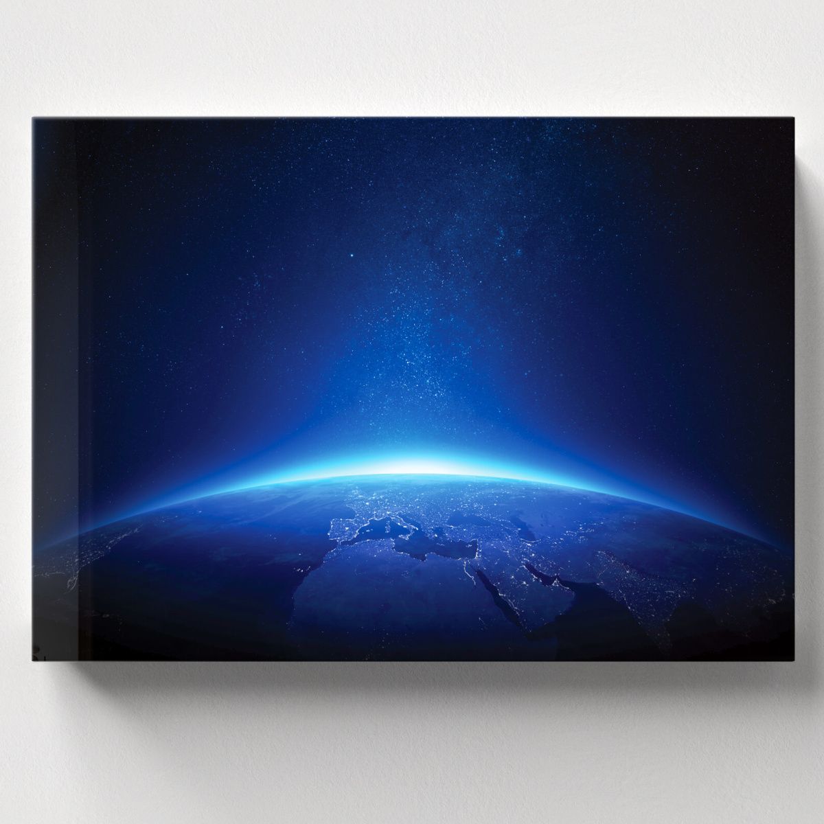 Шикарная фотография планеты земля со спутника. Снимок был сделан с орбиты перед восходом солнца. Уже после этого был обработан дизайнером и представлен к печати. Картина на стекле «Планета Земля» от компании Postermarket имеет полированный торец и напечатана экологичными чернилами. Яркие живые краски отлично подчеркивают линии изображения. Картина на стену великолепно впишется в интерьер дома и офиса. Смотреть полный каталог картин здесь