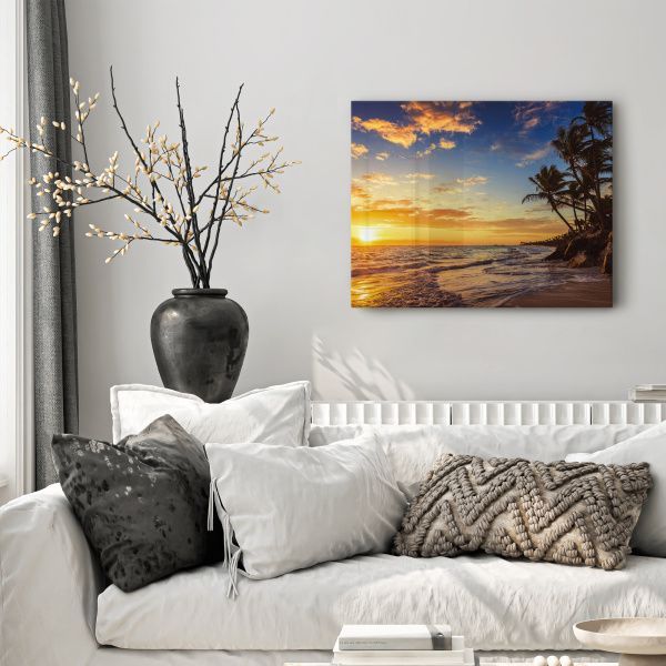 Природа – самая затейливая выдумщица. Ну какой художник соединит такие краски, даст такую подсветку? И чуть ли не каждую минуту меняется картина... Вот почему мы готовы часами сидеть и смотреть на море, горизонт, закат. Так хочется запомнить каждое мгновение. Закажите яркую красочную картину на стекле для интерьера "Райский остров" на стену в интернет-магазине Postermarket для украшения помещений дома и офиса.