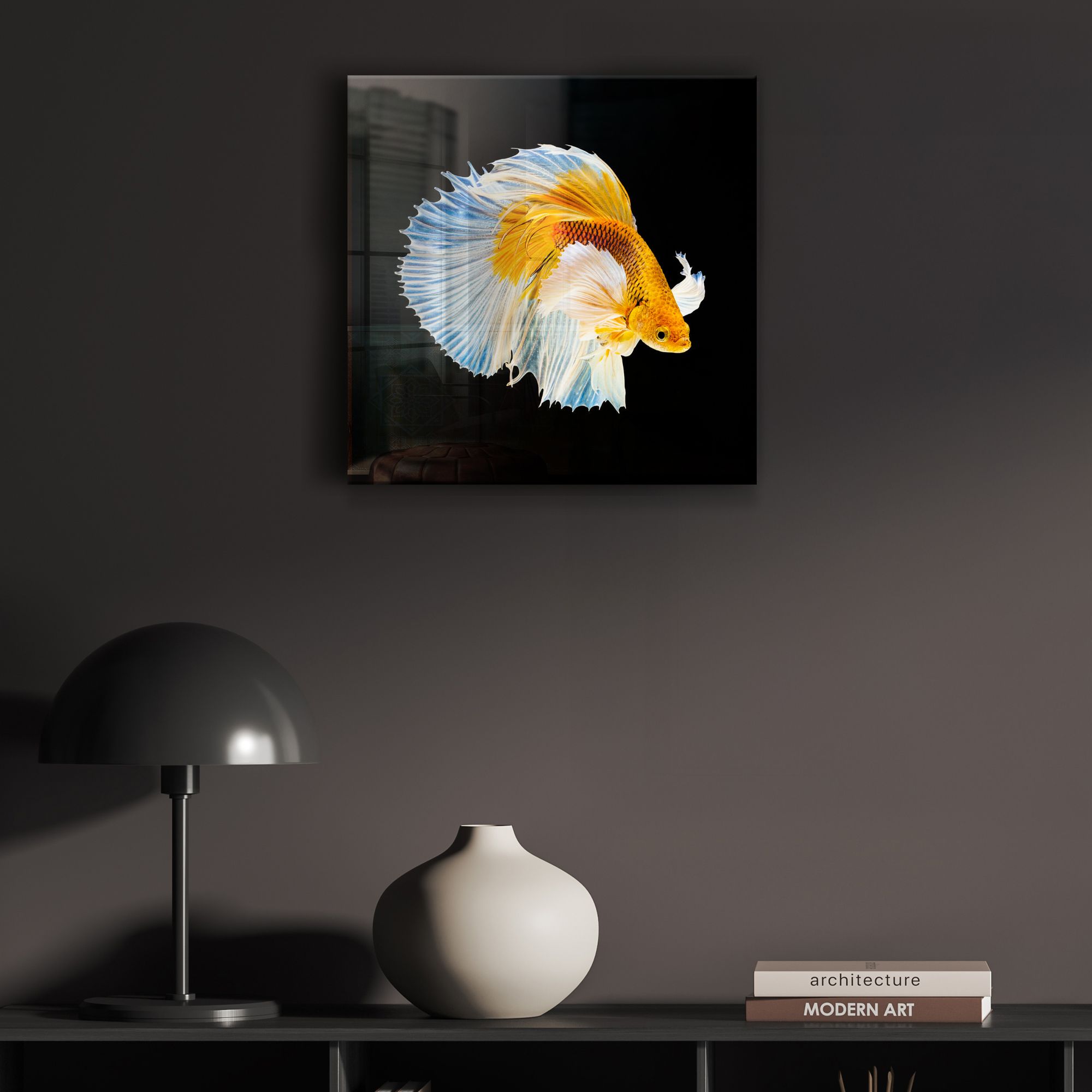Лаконичность картины на стекле «Сиамская желтая рыбка» привлекает внимание. Никаких лишних элементов, лишь черный фон и яркий акцент. Изображение можно разместить как в домашних условиях: в гостиной, прихожей, спальне или кухне. Так и в помещениях другого типа: офисе, кабинете салона красоты, барбершопе или кофейне. Преимуществом картины на стекле желтая рыбка является то, что она может заполнять пространство как индивидуальным образом, так и в сочетании с иллюстрациями идентичного стиля. Яркая рыбка на черном фоне смотрится интересно и примечательно. Если Вас покорил этот оригинальный элемент декора, тогда рекомендуем купить картину на стекле «Сиамская желтая рыбка» прямо сейчас!